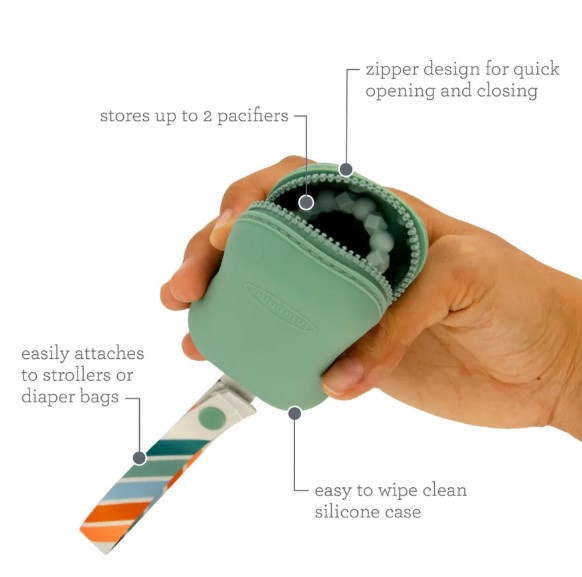 這款奶嘴盒由高品質食品級矽膠製成,旨在讓寶寶的奶嘴保持清潔且觸手可及。 長環帶可輕鬆固定在寶寶的衣服、嬰兒車或汽車座椅上,確保奶嘴在您需要時始終觸手可及。