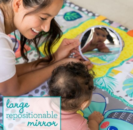 為寶寶打造寬敞又充滿趣味的探索空間!從假裝餵猴子到探索各種紋理形狀、聆聽沙沙作響的聲音、觸摸色彩繽紛的絲帶,以及使用巨型自拍鏡,這款遊戲墊能全面激發寶寶的感官與好奇心。輕巧可摺疊設計,方便外出攜帶,讓寶寶隨時隨地享受探索樂趣。