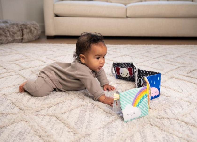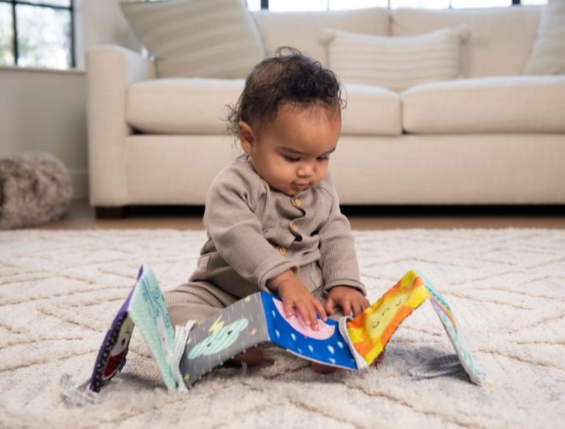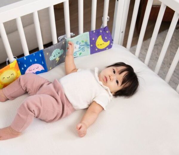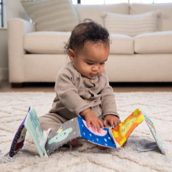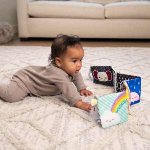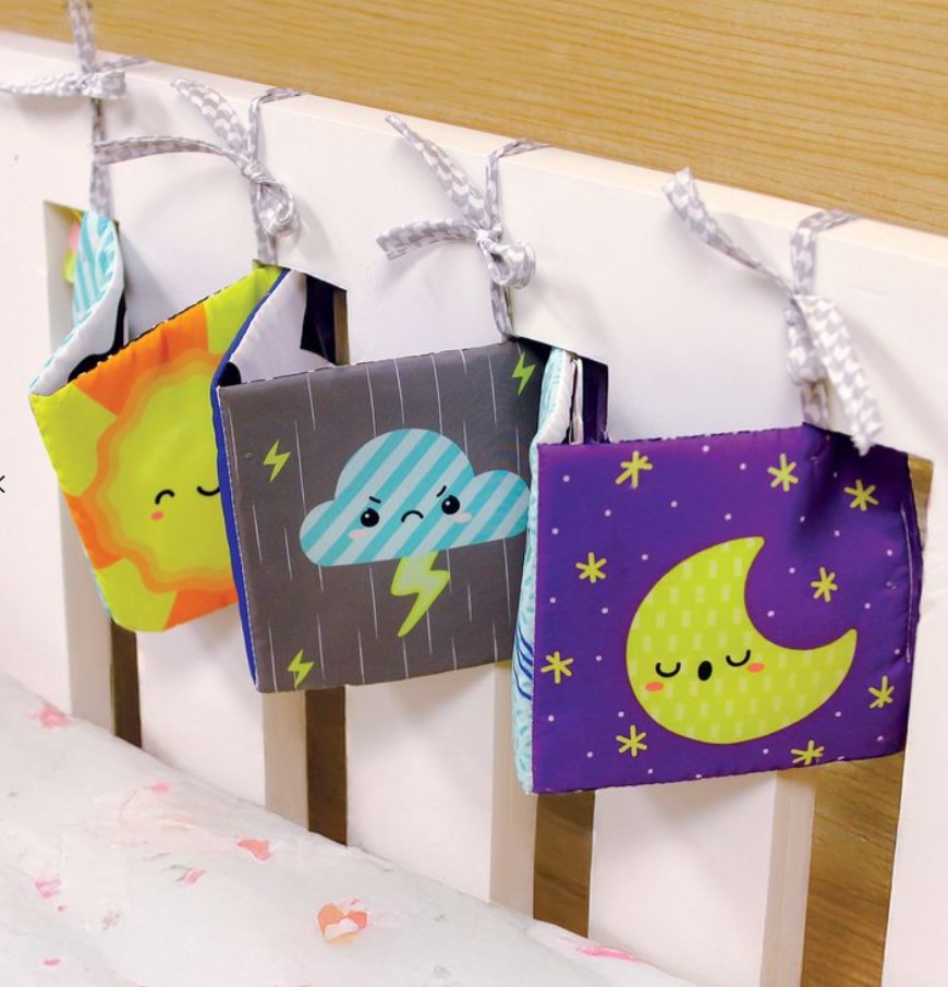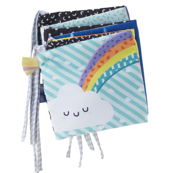 雙面視覺效果 皺巴巴的聲音很易吸引寶寶聽覺 引人觸摸的優質面料 五顏六色的緞帶