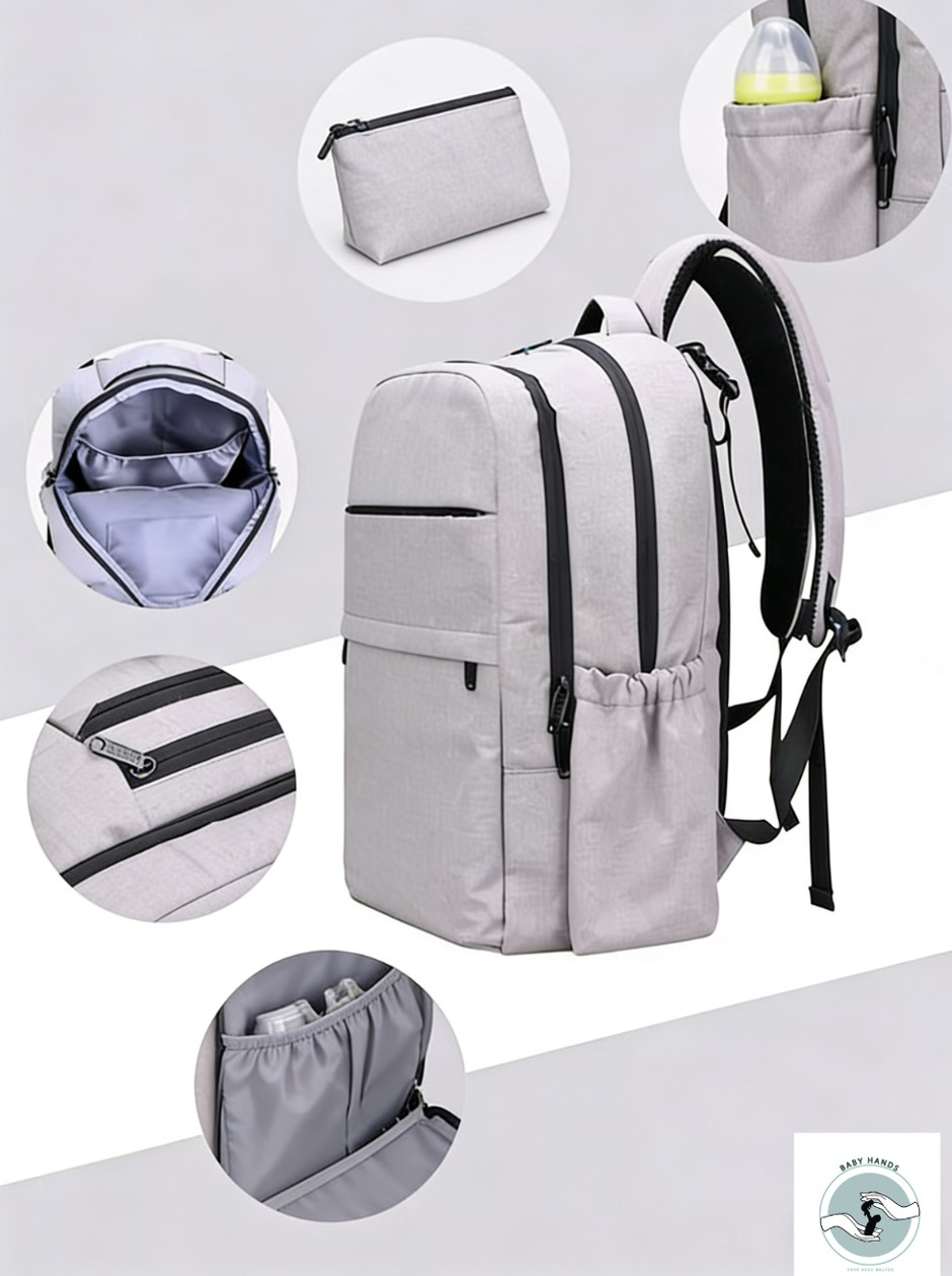 正面隔層包含 2 個多用途置物隔間,加大收納容量。讓您可以輕鬆取到一切用品。在旅游時可用來放置筆記型電腦。您就可以亮麗地度過寶寶出生、幼兒時期以及往後的時光。