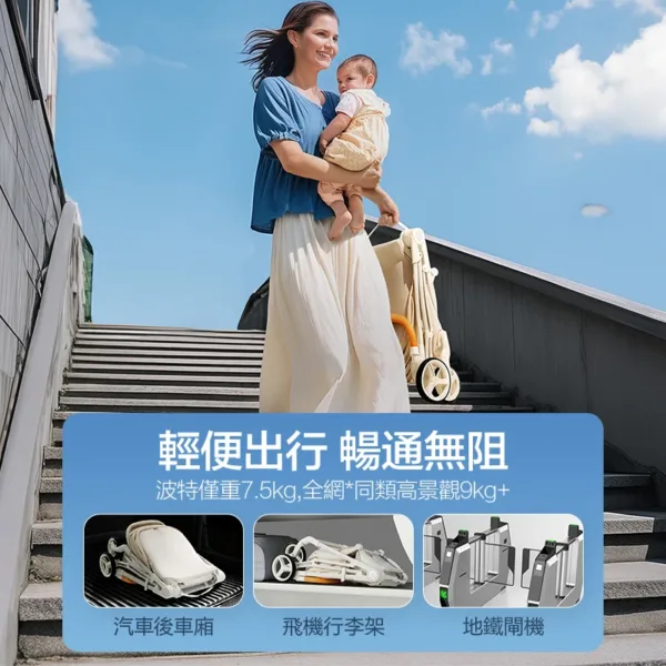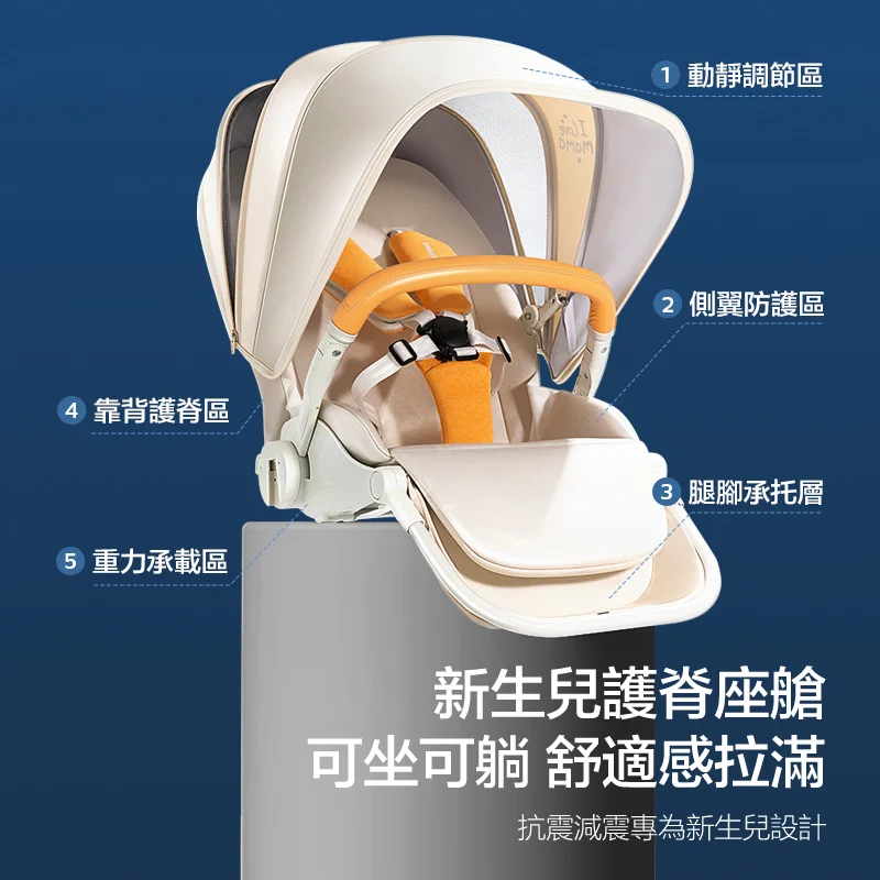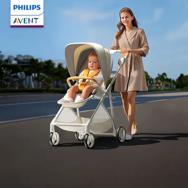 Philips Avent 嬰兒手推車 PORTO 波特 產品功能 五點或磁力安全卡扣、寬大置物籃、聯動雙剎車秋統、95度-175度平躺模式、3段式可調節腿靠、18cm前輪配合20cm加厚後輪
