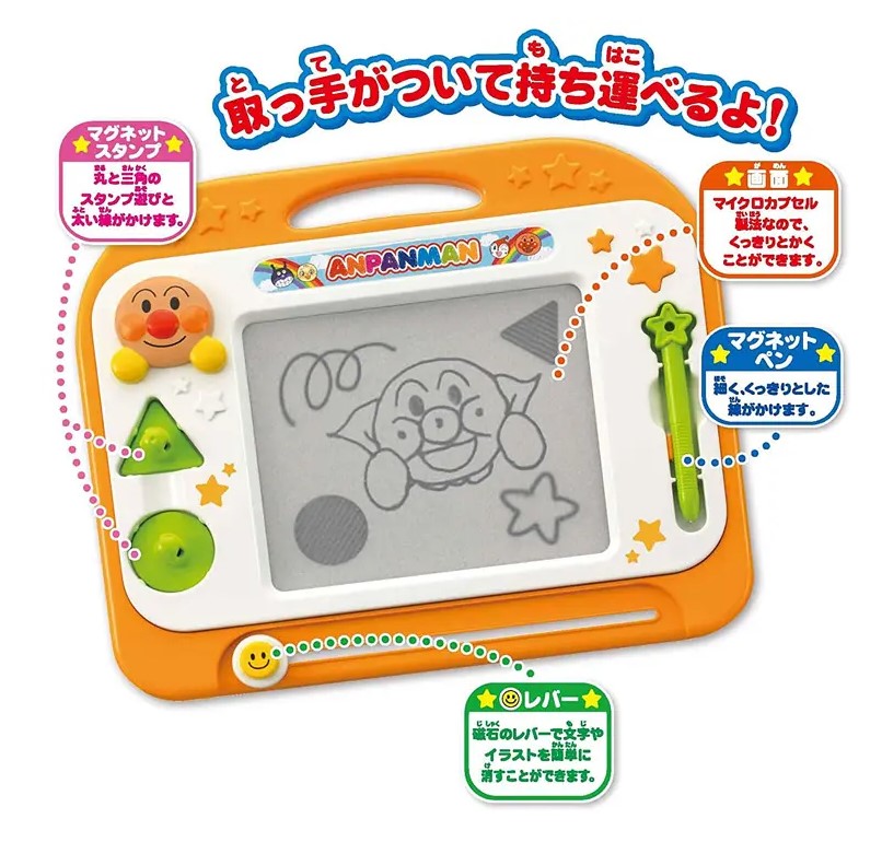 麵包超人 益智畫板 ~ 內含磁性畫筆🖍磁性圖案印章x2 ~ 手提把設計方便孩童提拿 ~ 促進腦開發 ~ 多方面啟發寶寶的腦部運動和動手能力 ~ 加強孩子的手指發達, 想像力, 創造力, 集中力, 認知力 ~ 適合年齡: 18個月或以上 ~ 尺寸: 約32cm*26.5cm*4cm