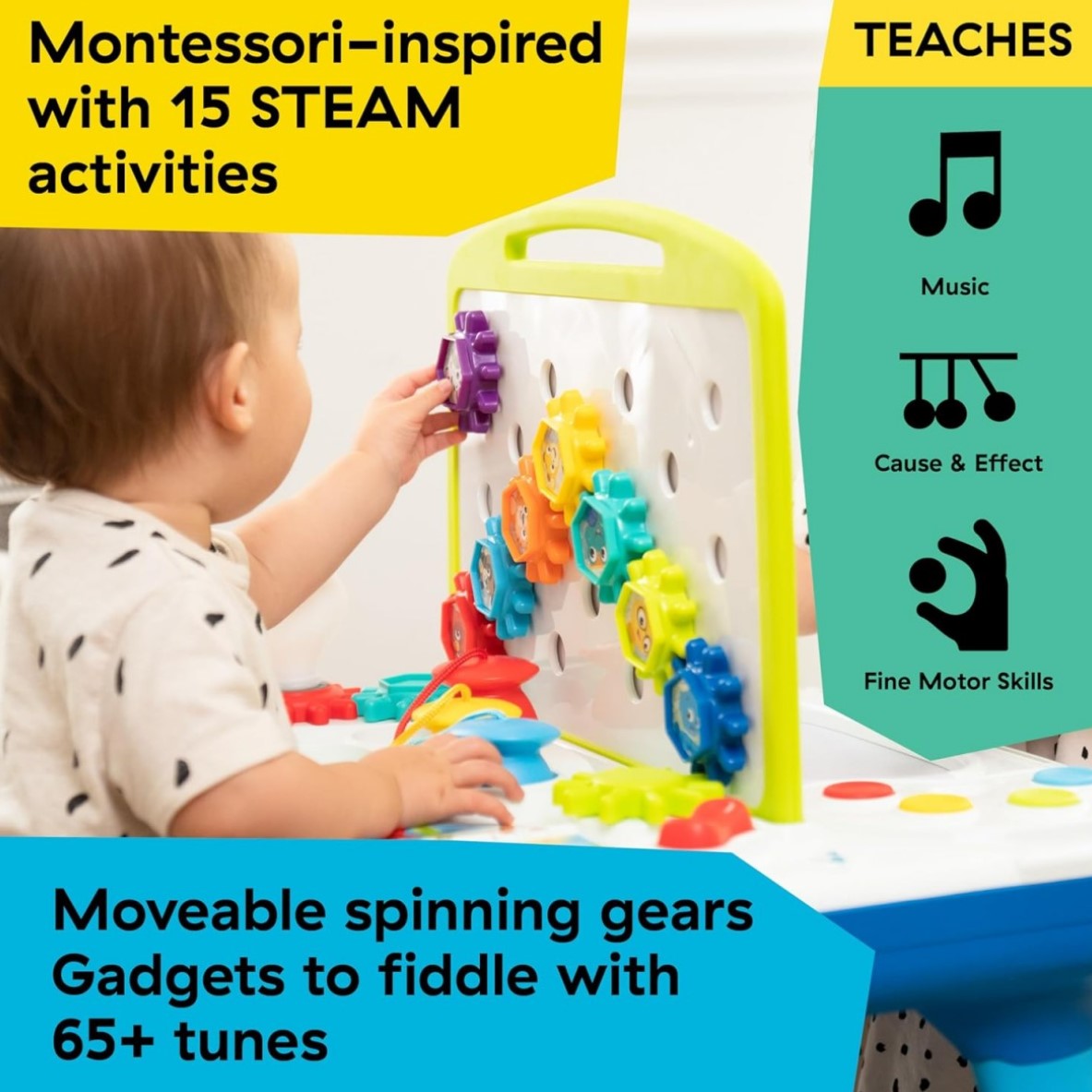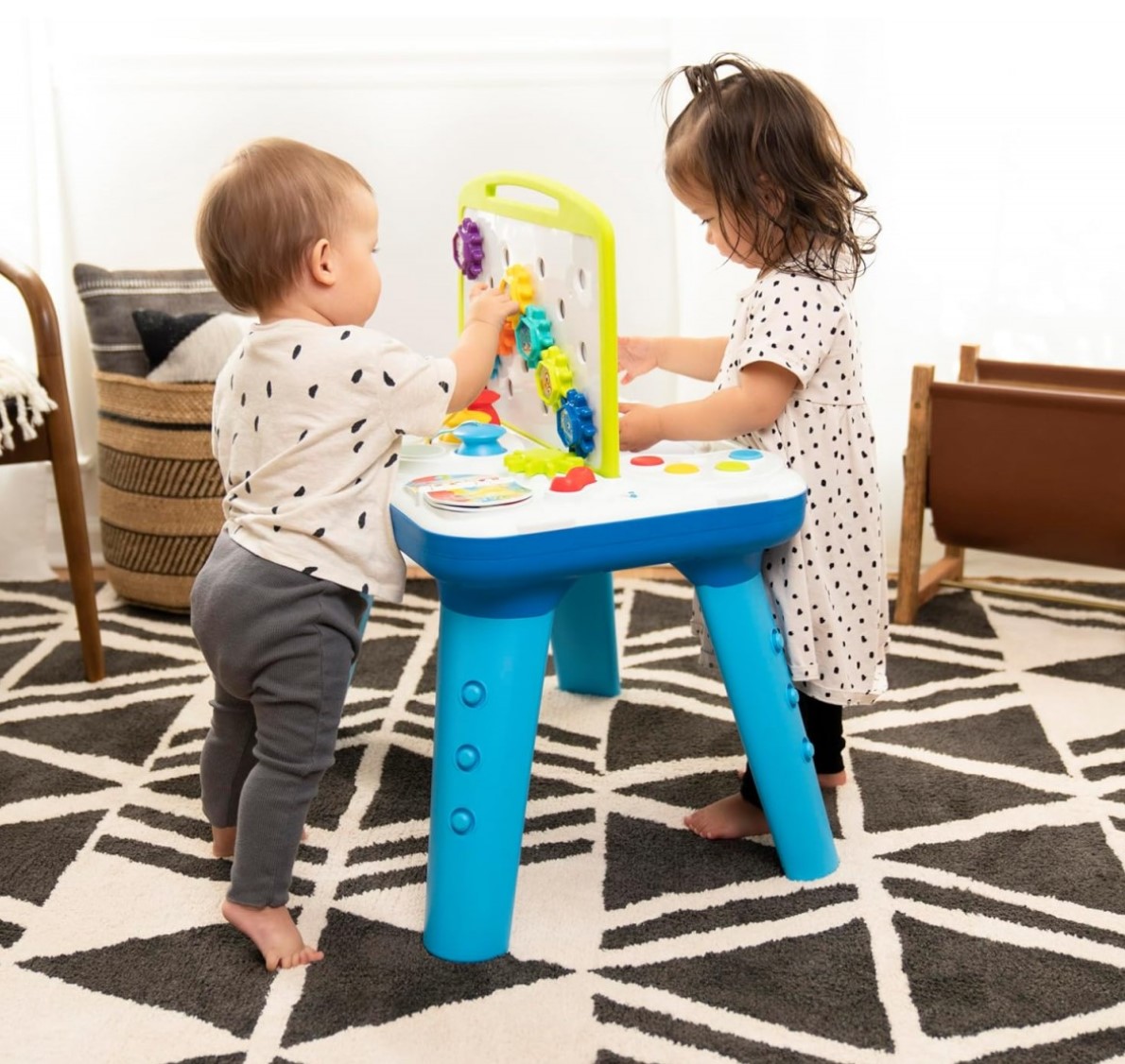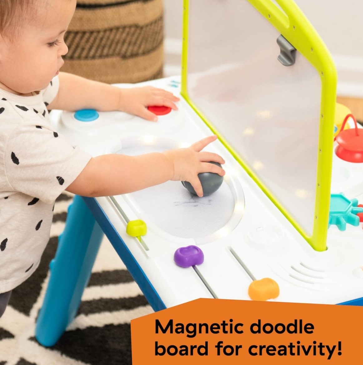 這款雙面設計的活動學習桌,巧妙融合了寶寶與生俱來的藝術家氣質與對科學探索的熱愛。
