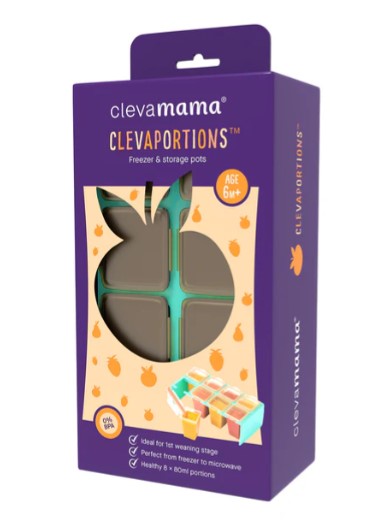 CLEVAMAMA CLEVAPORTIONS 食物分類格,也稱為冷凍儲存罐,是 Clevamama 網站的產品頁面 專為嬰幼兒設計的食品儲存容器,帶有獨立格,可方便地儲存、冷凍和分裝寶寶的副食品,通常由食品級 PP 材質製成,安全無毒,有密封蓋防漏,方便攜帶,幫助父母準備和管理寶寶的餐點。