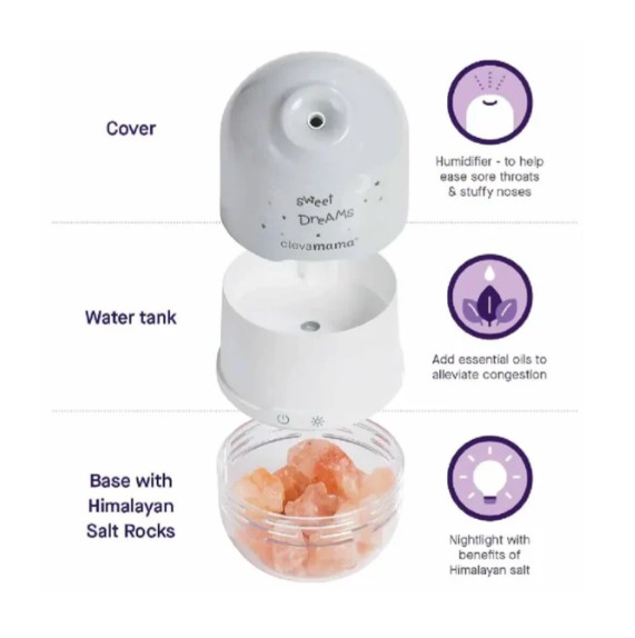 屢獲殊榮的 ClevaPure 喜馬拉雅鹽燈和加濕器可用作溫暖舒適的夜燈、加濕器和香薰噴霧器。The award winning ClevaPure Himalayan Salt Lamp & Humidifier can be used as a warm comforting night light, a humidifier and an aromatherapy diffuser all in one.