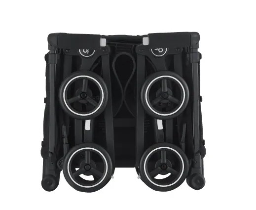 只需2個步驟,便可把手推車收摺到細小,如手袋型狀,亦可存放在飛機或地鐵火車上頭頂的行李架內 !