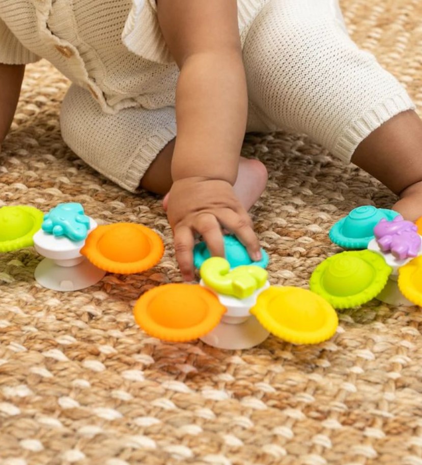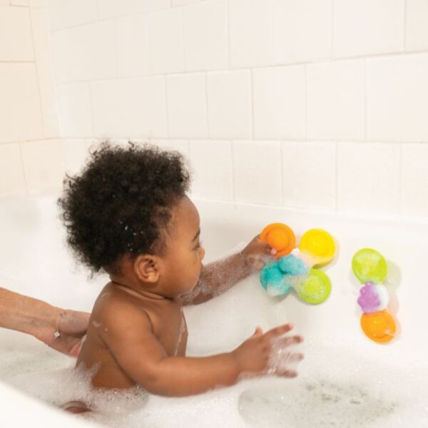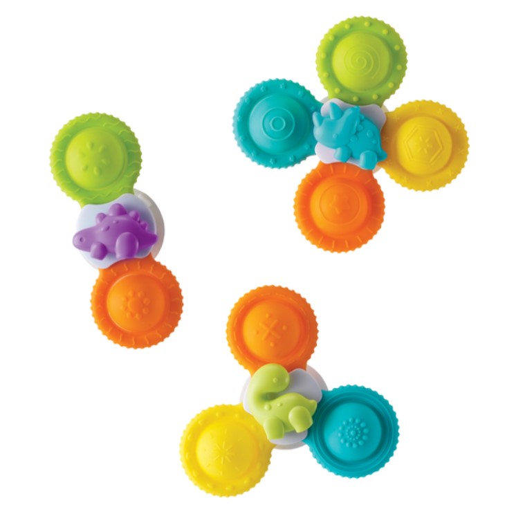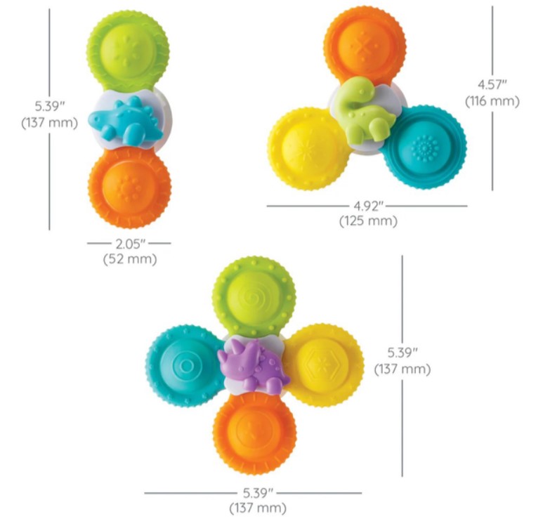 3 款有趣又引人入勝的洗澡旋轉器,適合好奇的小朋友 鮮豔的色彩和有趣的紋理促進感官發育 安裝簡單的吸盤,方便玩耍 以柔軟的嬰兒友善矽膠製成,方便小手探索 易於彈出、擠壓和旋轉的功能可促進精細運動技能的發展