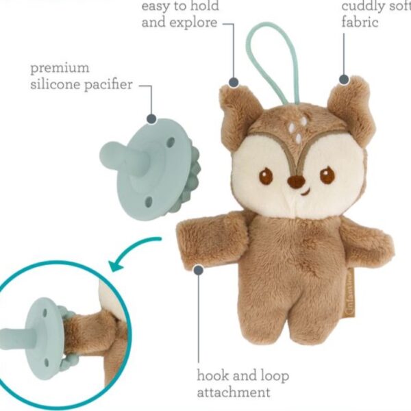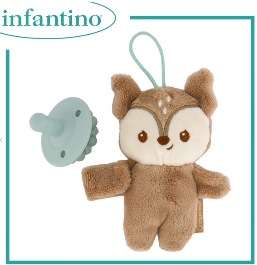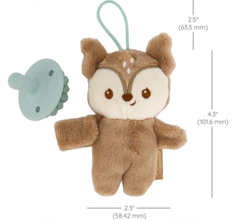 適合初生嬰兒使用 採用柔軟舒適的布料製成,寶寶一定會愛上依偎。它能帶來情感上的舒適和身體上的放鬆,深受寶寶和家長的喜愛。 隨附的安撫奶咀採用優質柔軟矽膠製成,為寶寶帶來舒緩體驗。 安撫奶咀設計方便寶寶抓握與探索,促進寶寶自我安撫。 將安撫娃娃和安撫奶咀固定在一起,防止遺失,確保它們始終觸手可及。 不含BPA
