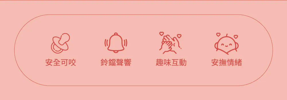 ◉車縫緊實不脫落 ◉布料細緻、柔軟親膚 ◉含響紙、搖鈴、啾啾發聲器
