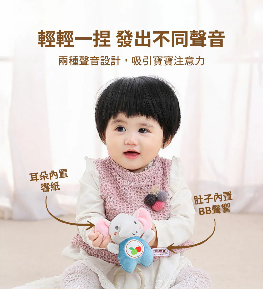 ✔️結構緊密車縫緊實,不易脫落,可水洗不易掉色 ✔️含響紙、搖鈴、啾啾發聲器,附吊環,吸引寶寶注意力