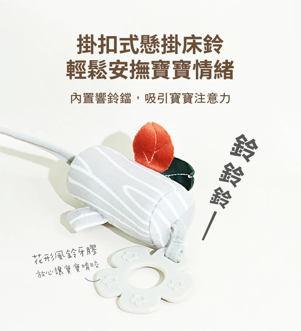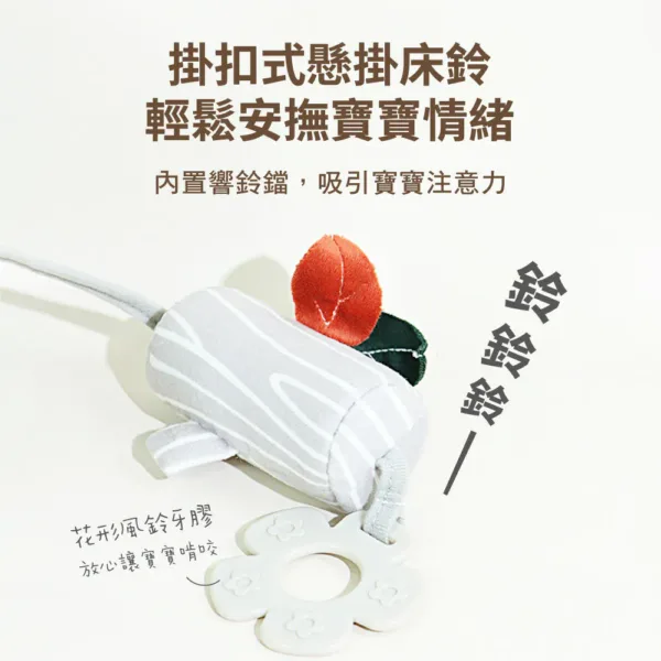✔️北歐風嬰兒房布置必備 ✔️嬰兒床鈴附固齒器,寶寶口慾期可安心啃咬 ✔️樹幹形狀搖鈴為風鈴般的清脆音,吸引寶寶注意力 ✔️材質柔軟舒適,結構緊密、車縫緊實,不易脫落,可水洗、不易掉色 ✔️強力大直徑夾子,吊哪都方便
