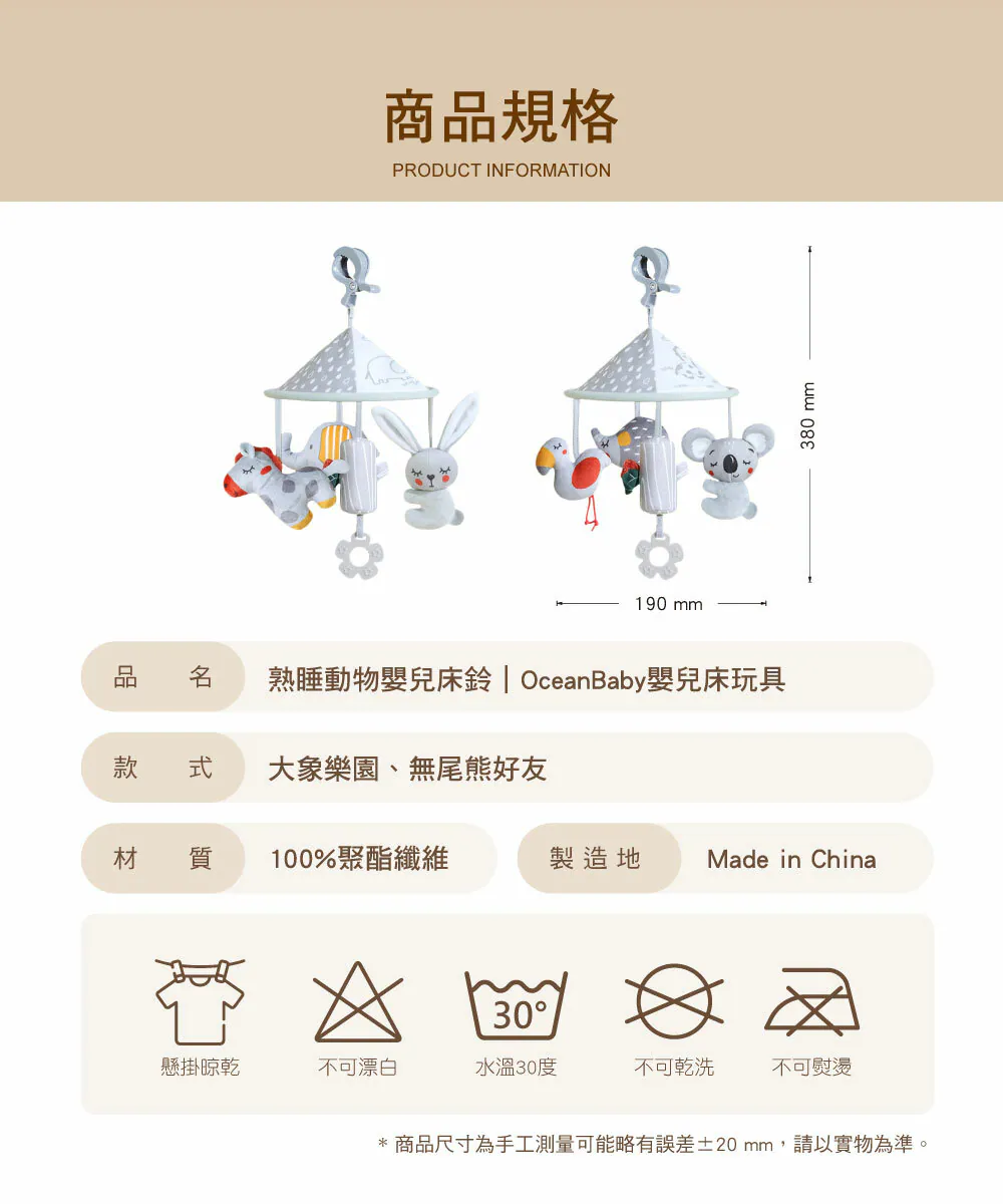 OceanBaby 熟睡動物嬰兒旋轉床鈴