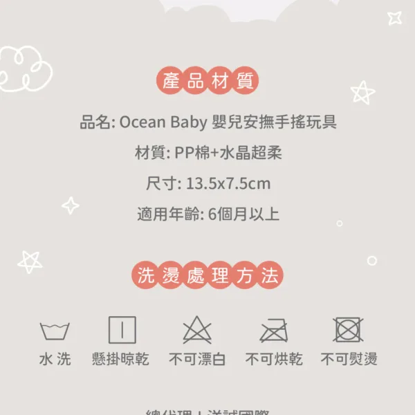 ■環保印染不易掉色OceanBaby嬰兒安撫手搖玩具