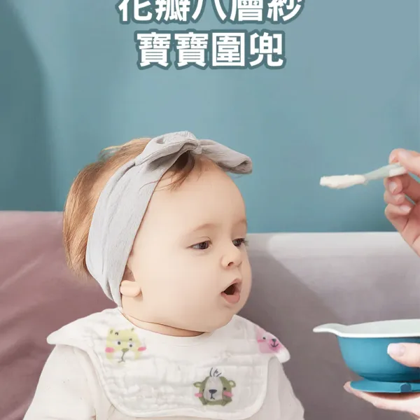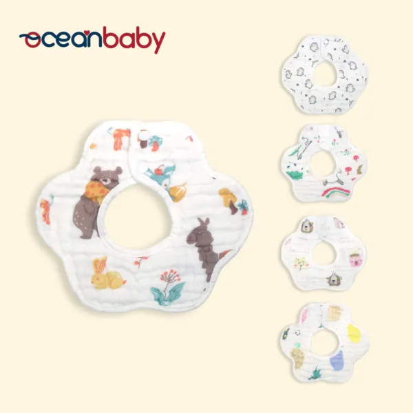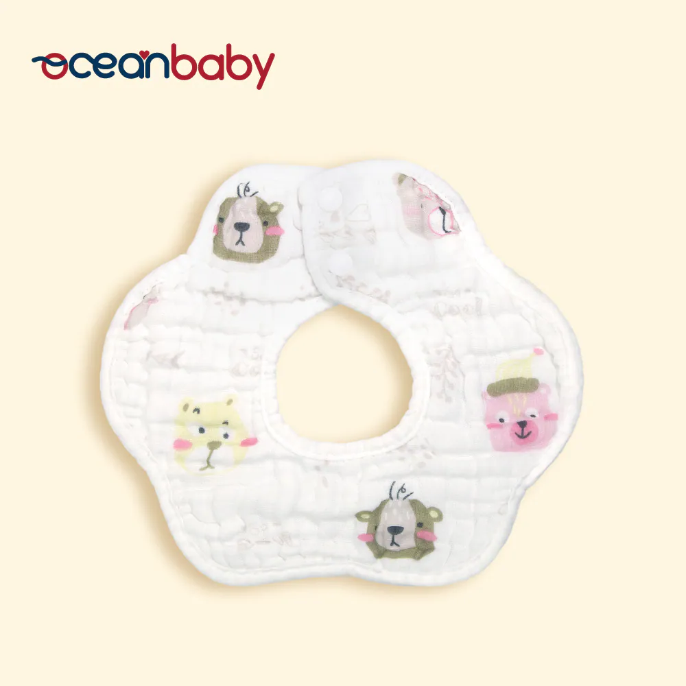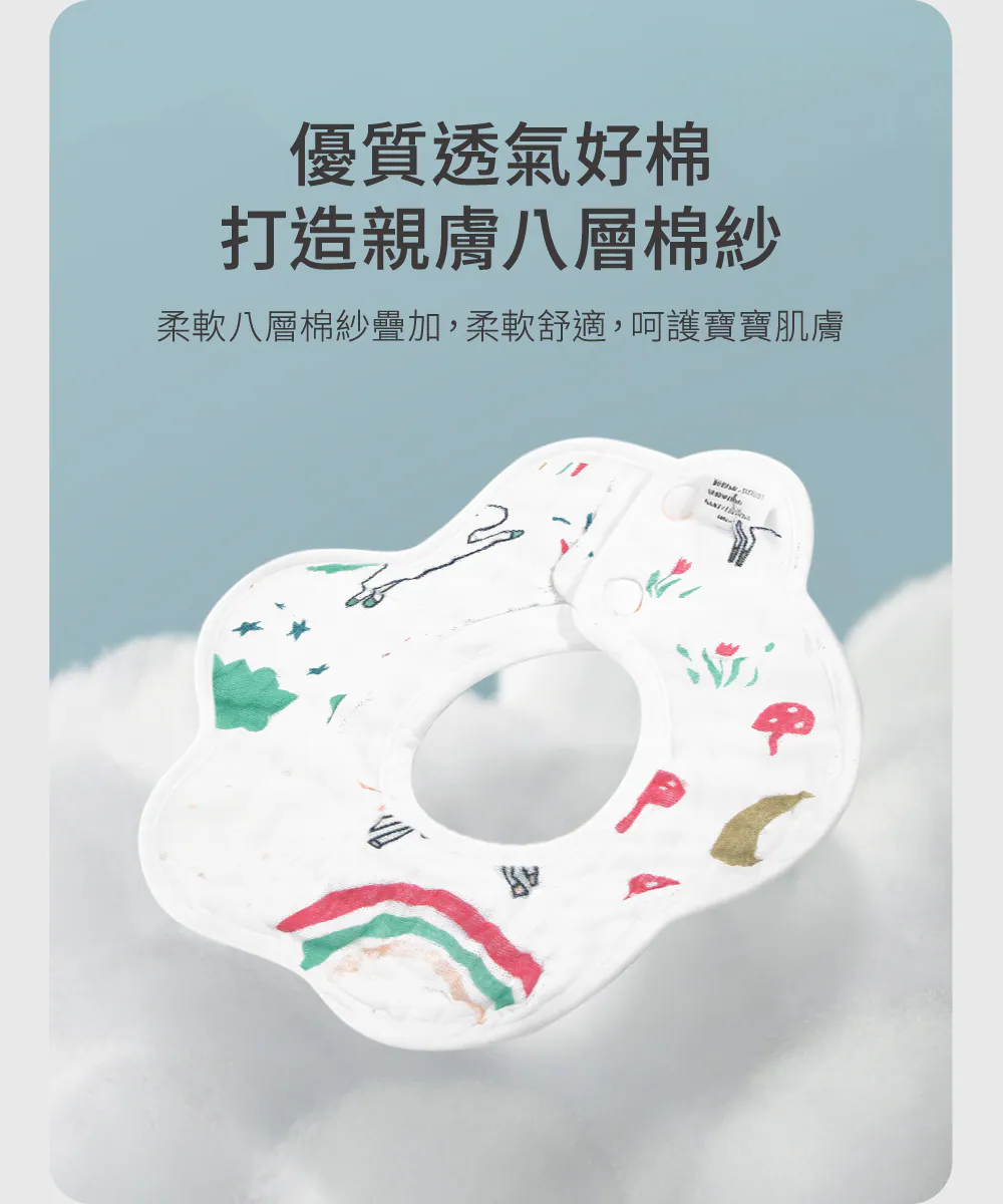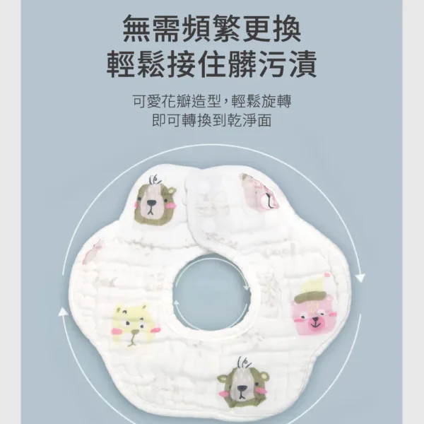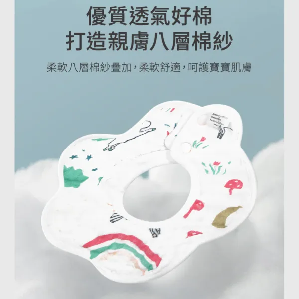 OceanBaby花瓣八層紗寶寶圍兜兜 ◉100%純棉超吸水 ◉360度旋轉設計,無死角保護 ◉雙重固定扣,不易鬆脫