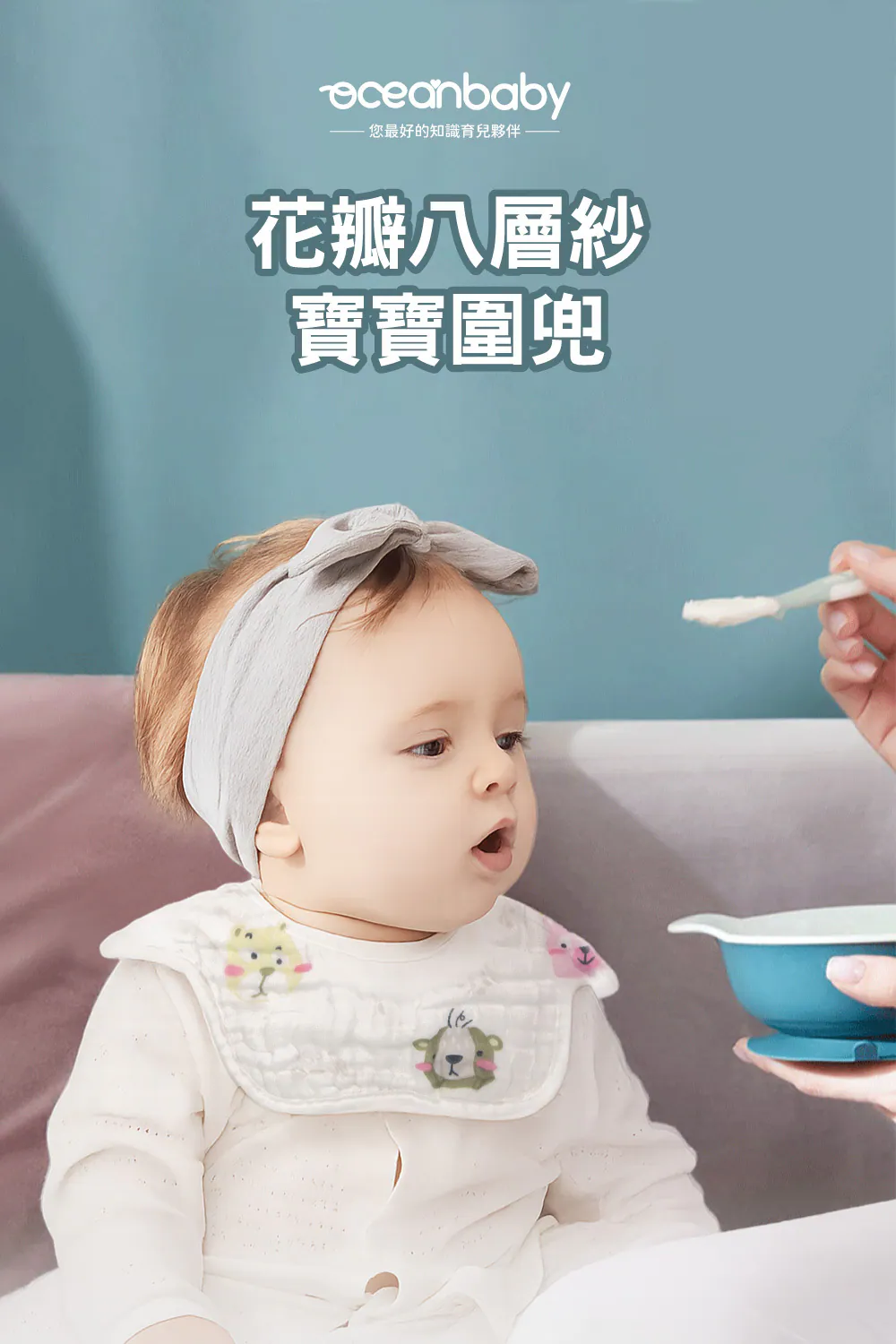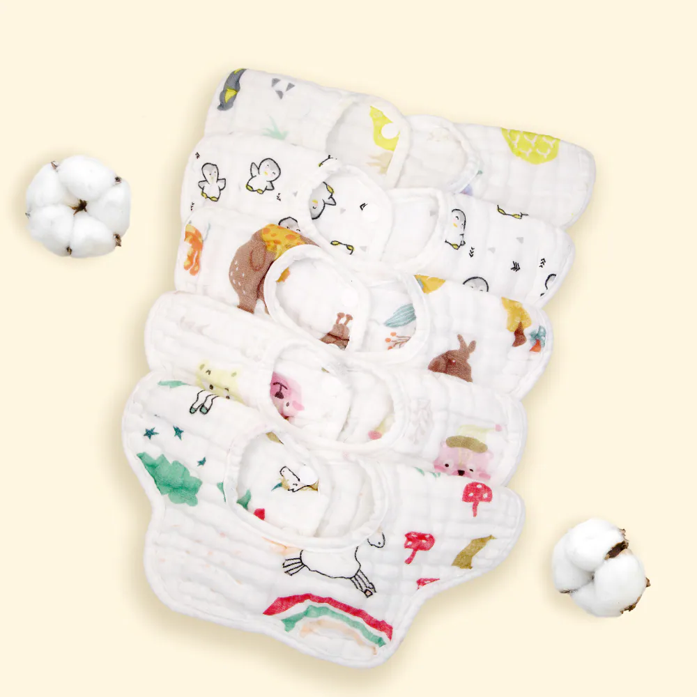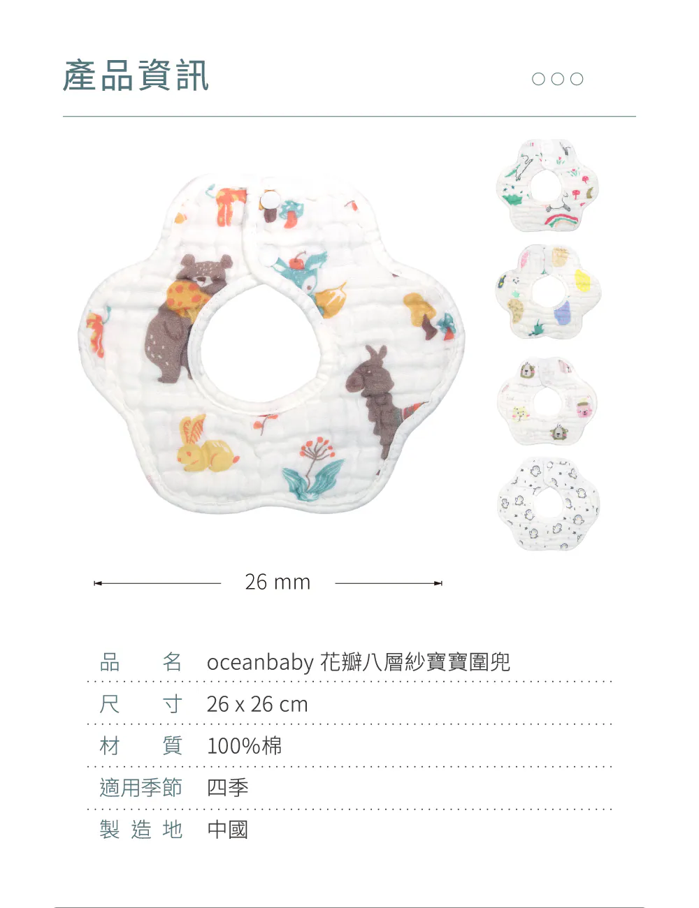 OceanBaby花瓣八層紗寶寶圍兜兜 ◉100%純棉超吸水 ◉360度旋轉設計,無死角保護 ◉雙重固定扣,不易鬆脫