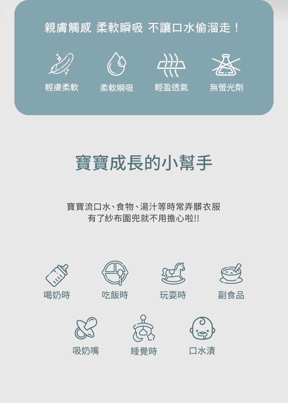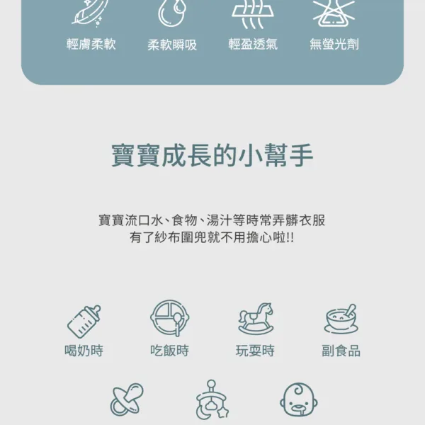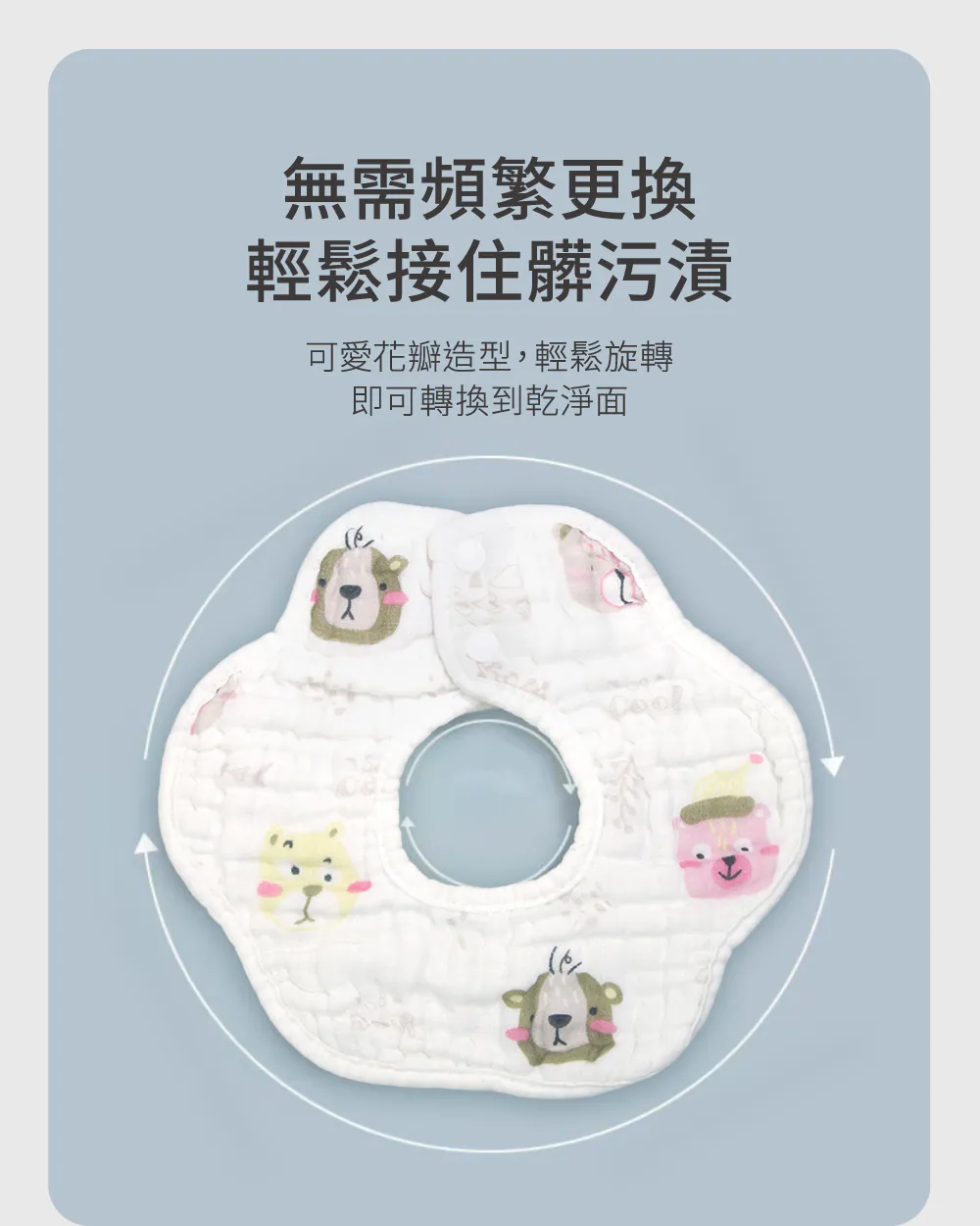 ◉柔軟八層棉紗,親膚柔軟 ◉100%純棉超吸水 ◉360度旋轉設計,無死角保護