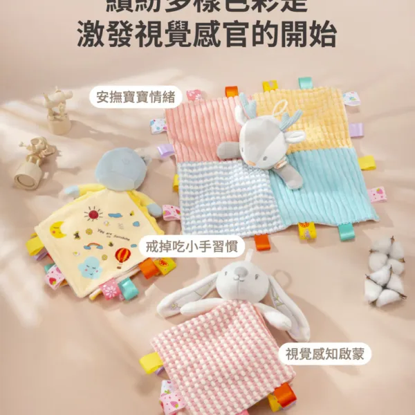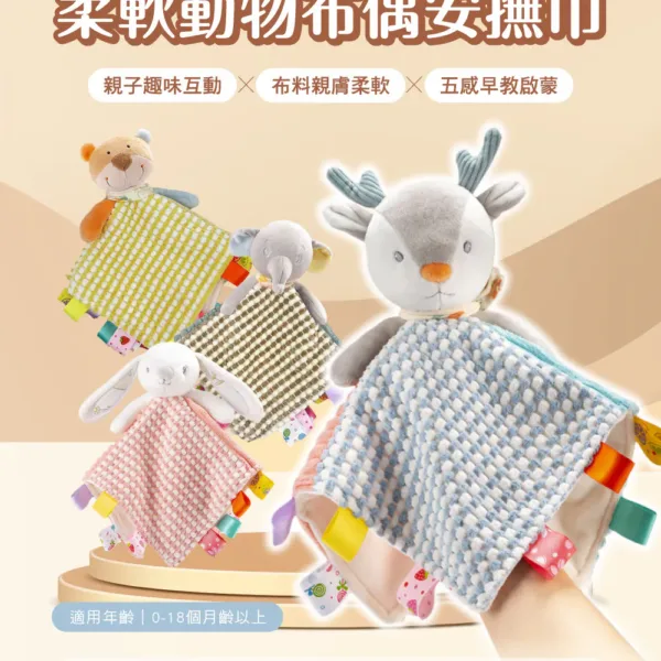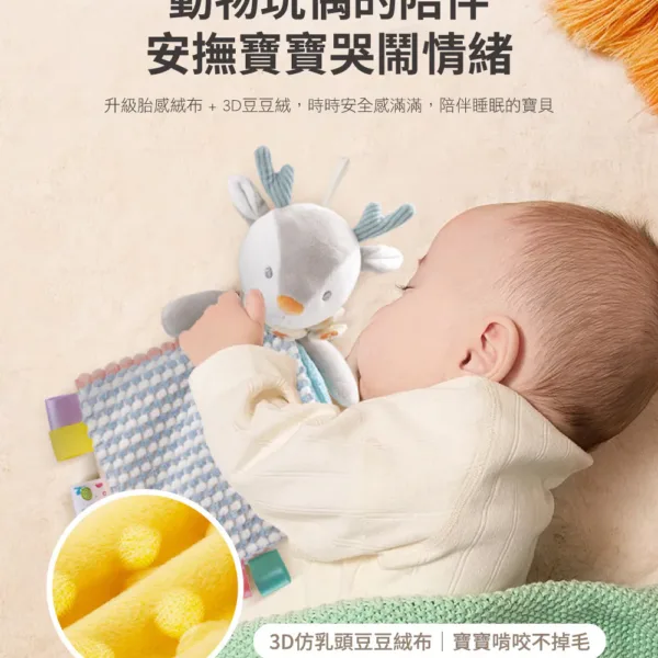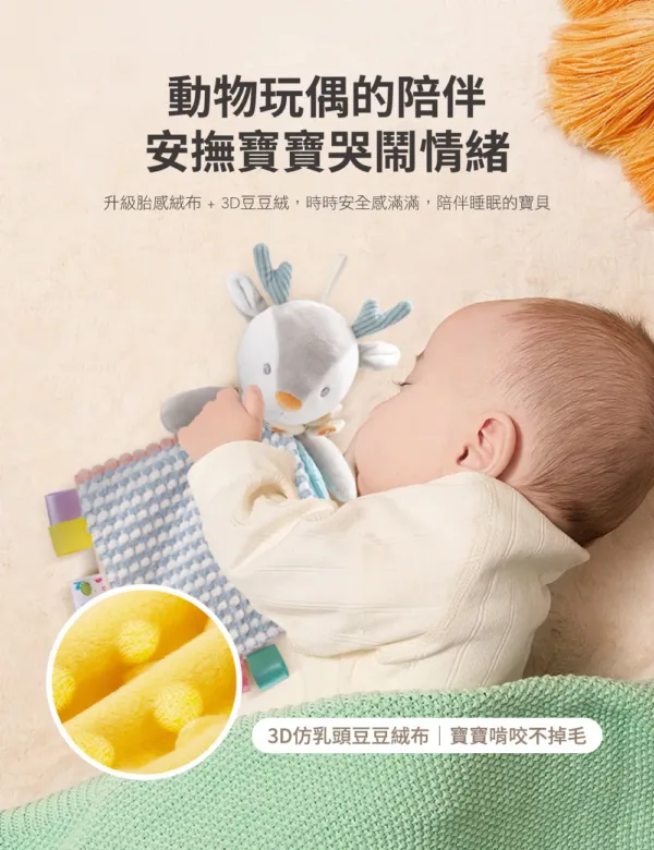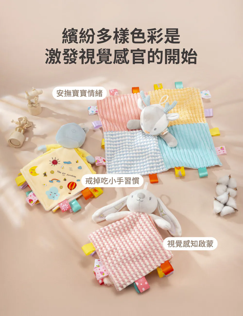柔軟動物布偶安撫巾,全新升級立體荳荳絨,讓孩子戒掉吃手手習慣!