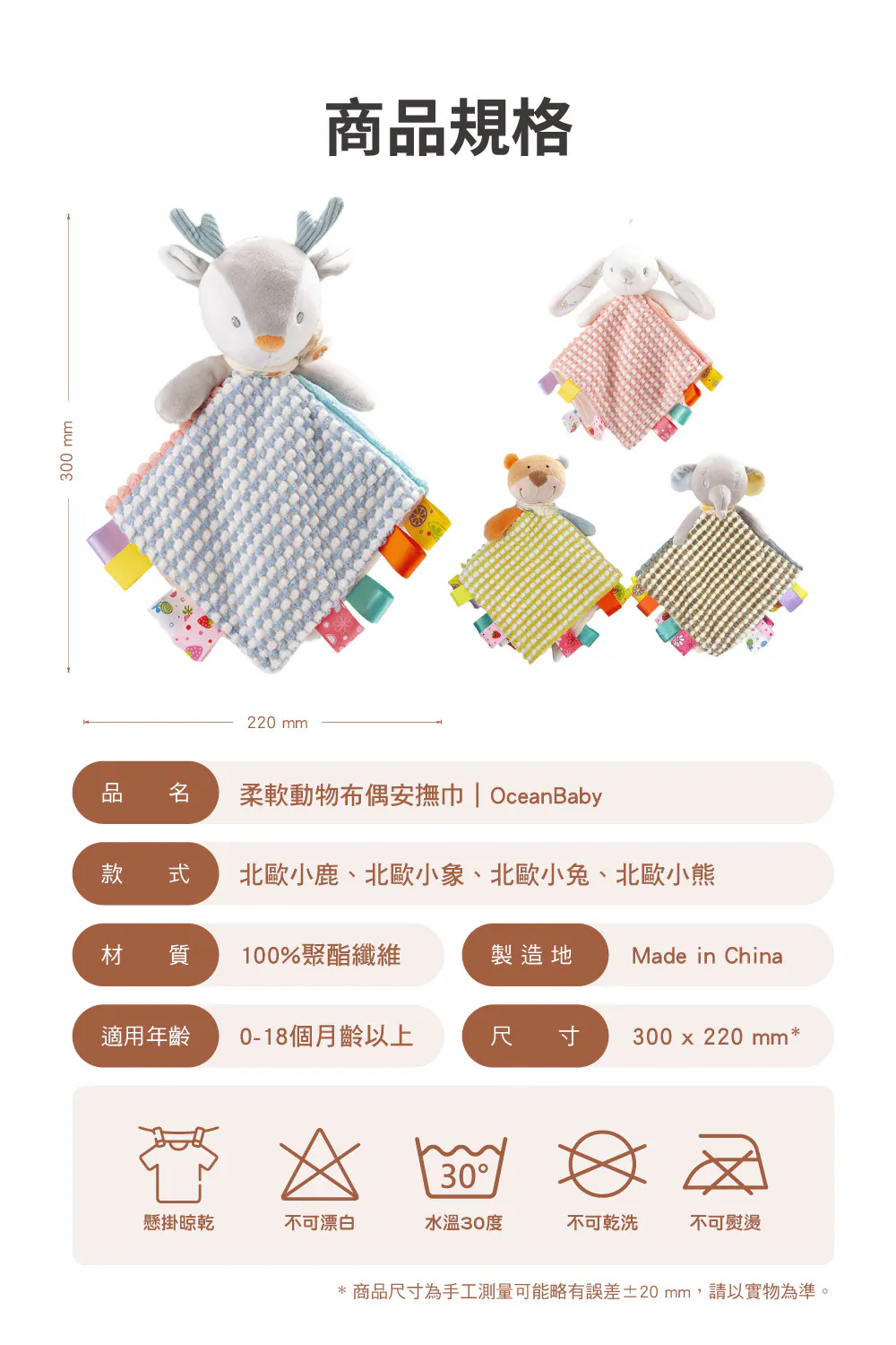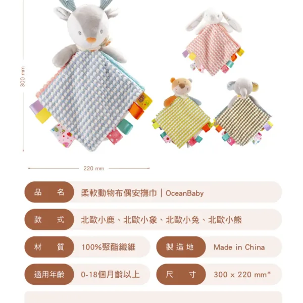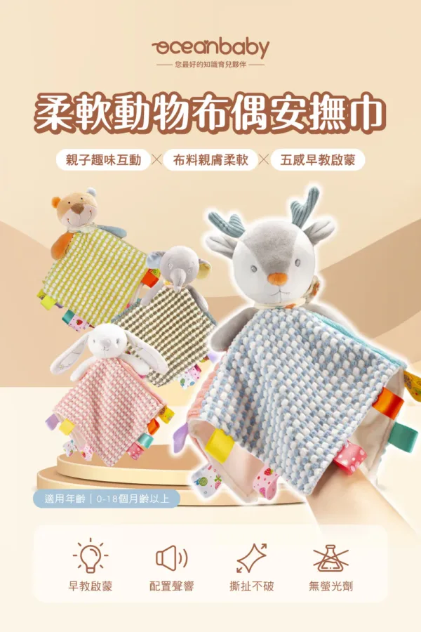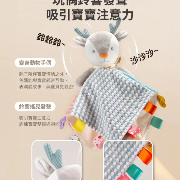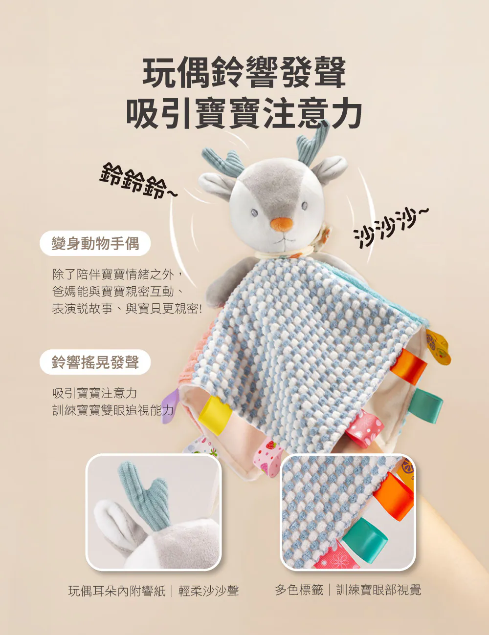 柔軟動物布偶安撫巾,全新升級立體荳荳絨,讓孩子戒掉吃手手習慣!