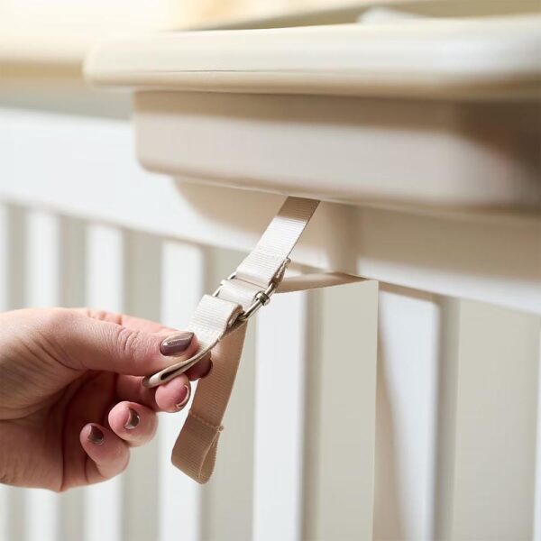 組裝時間:大約30秒,固定安全帶到嬰兒床上。